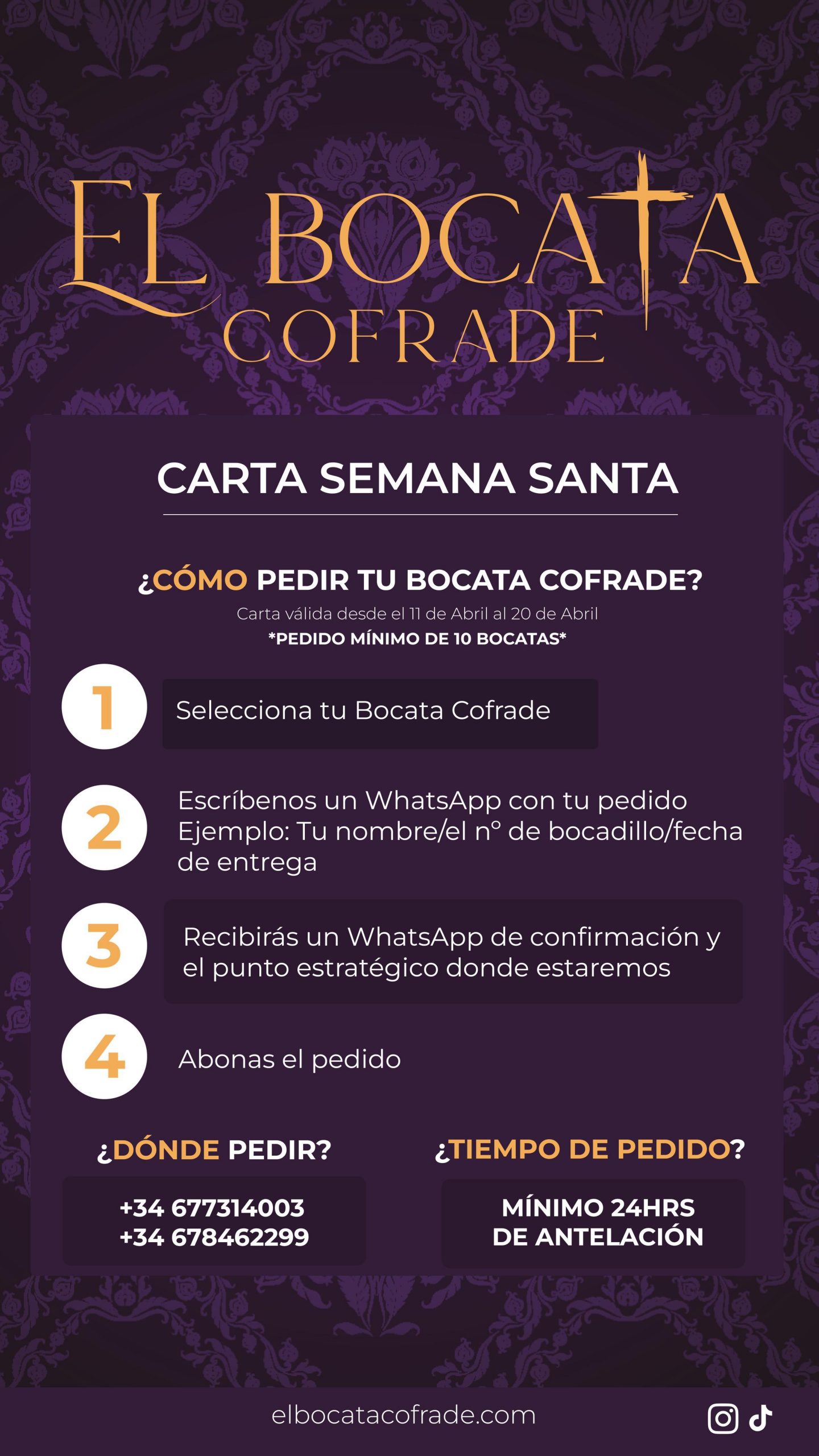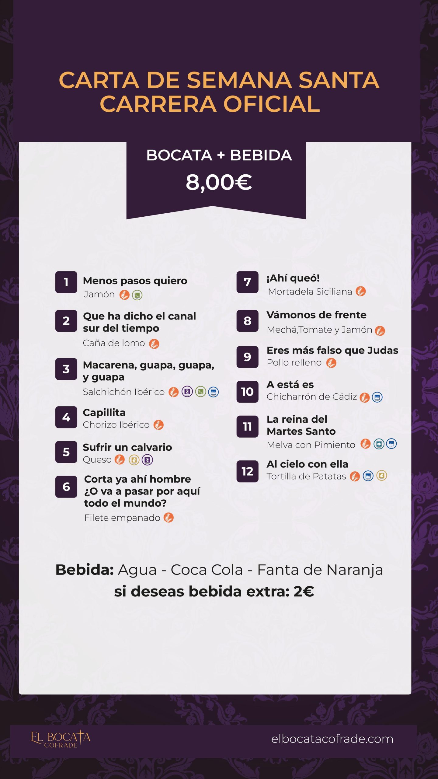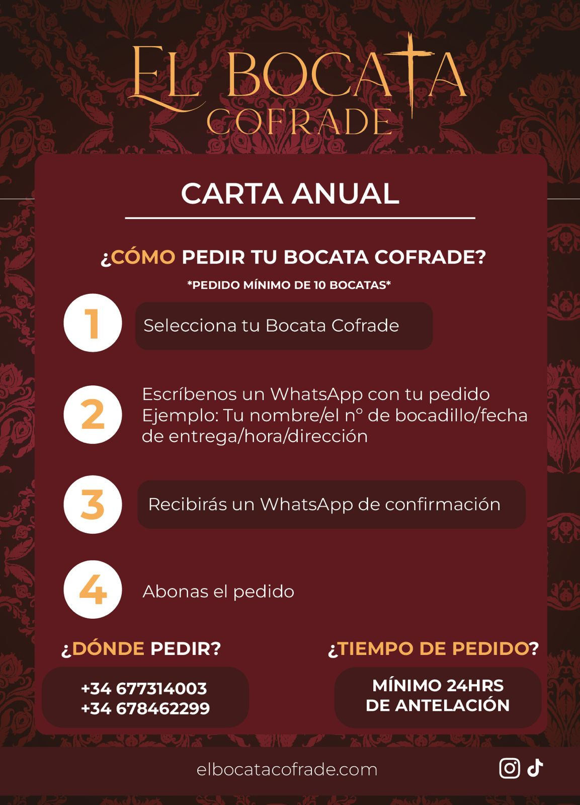 Te llevamos El Bocata Cofrade donde nos digas. Durante la Carrera Oficial tendremos puntos estratégicos para que tengas tu bocata al momento